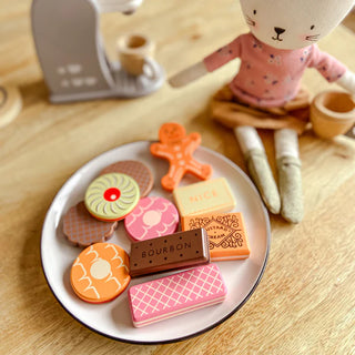 Step into a world of imagination with our Pretend Play collection — toys that turn everyday moments into magical stories. From wooden tool kits for budding builders to cleaning sets for little helpers, from cosy tea party biscuits to a rattan strolley for dolls and adventures, these heirloom-quality pieces encourage roleplay, empathy and creativity.
